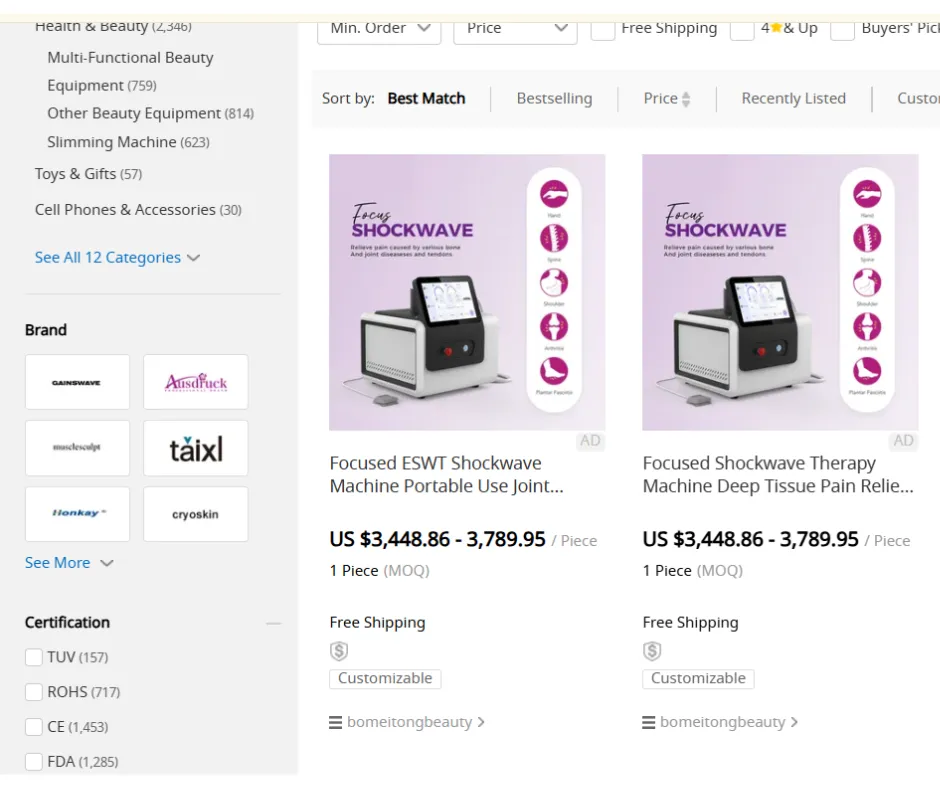 Probably the best machine on the market. Has actual FDA clearances. Good machines. Good Price. They just don't sell their own stuff so Curamedix and Vale kinda ruin it LOL.